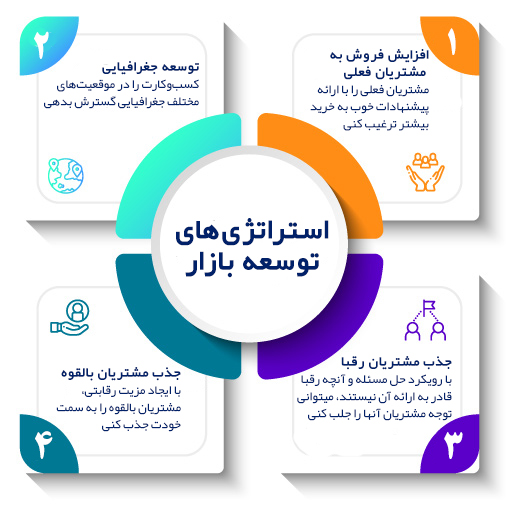 | توسعه بازار | فروش محصولات فعلی به بخش ها و بازارهای جدید |